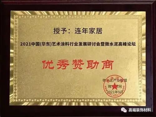 会上,连年家居被2021中国华东艺术涂料发展研讨会暨微水泥高峰论坛授予优秀赞助商。