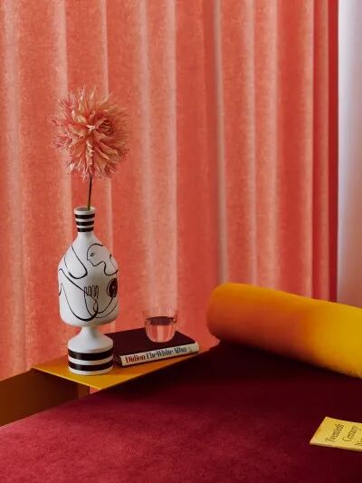 几何、粉红色调和俏皮的形状是时尚品牌审美愿景的关键原则。对于时装设计师的Roksanda Ilincic来说,这间公寓也不例外。用温暖、变化多样的色彩和柔和的曲线物体填充空间,以抵消鲜明的线条。